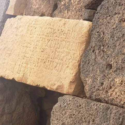 ينشر لاول مره: لوح حجري اثري قديم يحتوي على ٤ سطور بخط المسند اليمني القديم بنمط جميل جدا ولكن يظهر من خلال صورة اللوح هذا انه قد تعرض للكسر من الطرف لجهة الشمال كامل اخر السطور مما افقد النقش بعض النص وهذه قراءة مني لهذا النقش والذي جاء فيه: القراءة الاولى النصية / ١ / وهب شمسم / ايمن / بن / ال سعد / يرتع / واخيهو / ......٢ / وهو ثرن / وهشقرن / محفدهمو